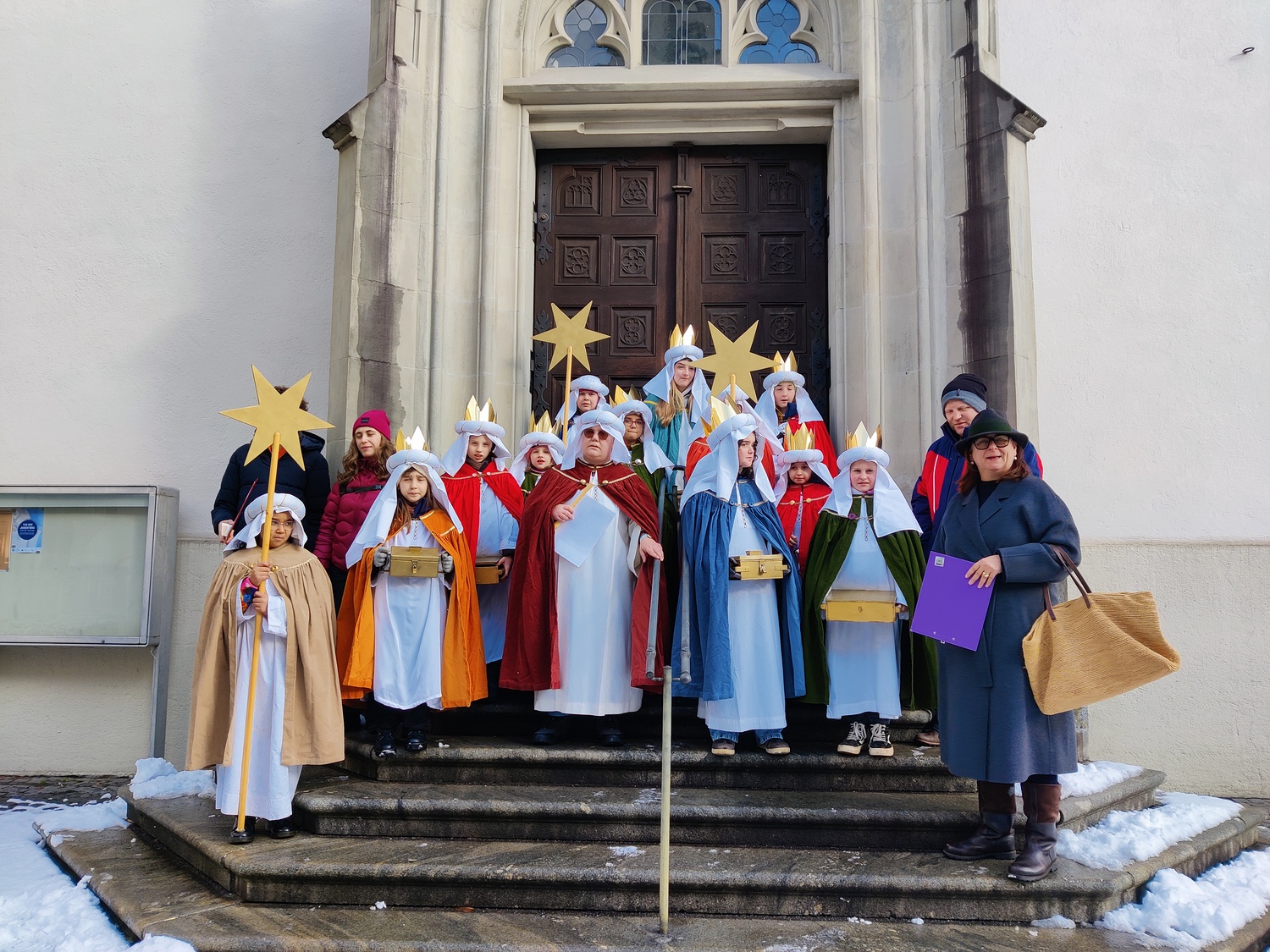 Mit viel Freude und großem Engagement haben 15 Sternsingerinnen und Sternsinger der Dompfarre Feldkirch trotz eisiger Minusgrade am Samstag, dem 3. Jänner, sowie am Sonntag, dem 4. Jänner, gemeinsam Gutes getan und vielen Menschen große Freude bereitet.