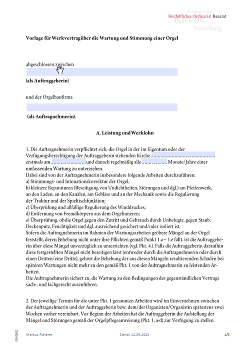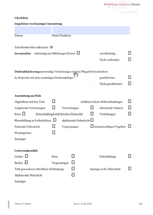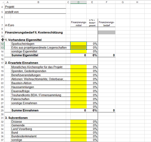 Vorlage zu Ansuchen um diözesane Baugenehmigung und Subvention