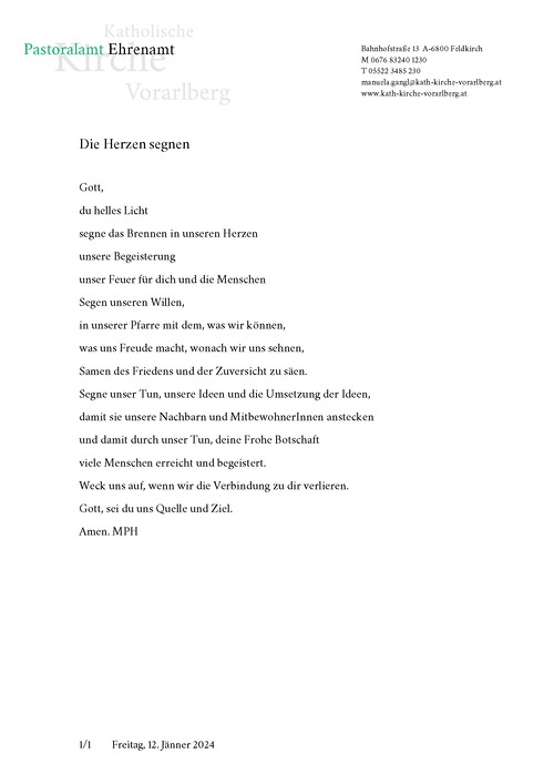 Ehrenamtsmanagement - Gebet Die Herzen segnen