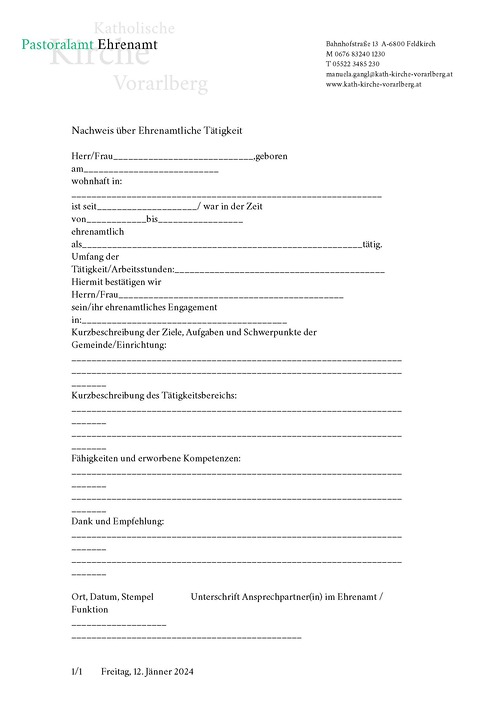 Ehrenamt - Bestätigung Freiwilligenorganisation