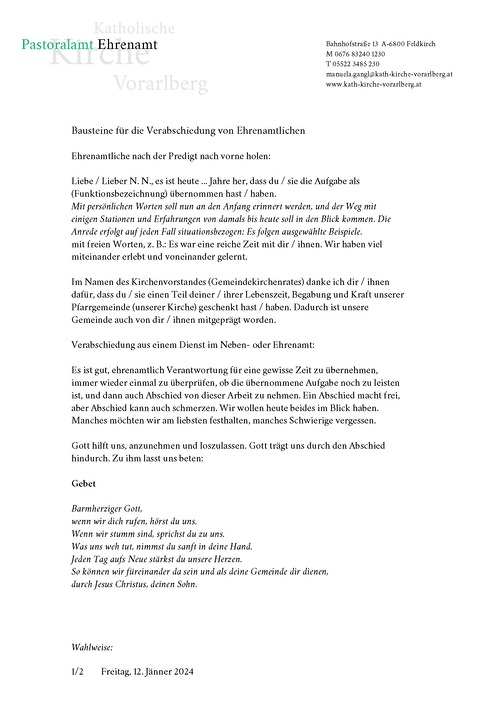 Ehrenamtsmanagement - Bauftragungs- und Segensfeier für Ehrenamtliche.