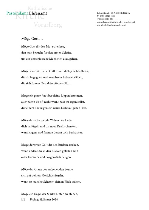 Ehrenamtsmanagement - Gebet Möge Gott...