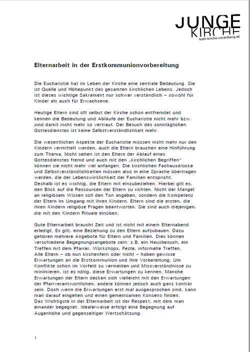 Ideen für die Elterarbeit in der Erstkommunionvorbereitung