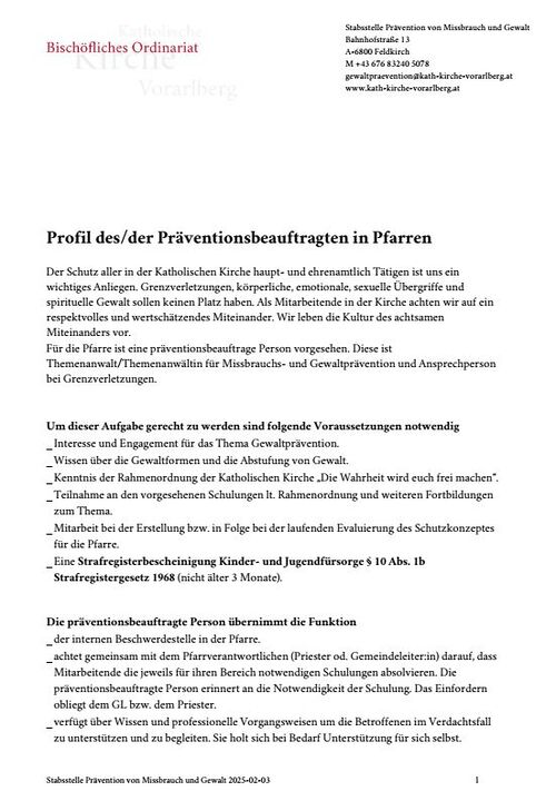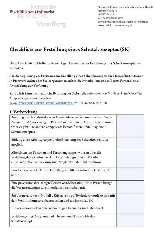 Schutzkonzeptvorlage für die Pfarre