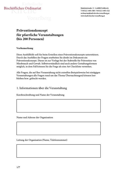 Präventionskonzeptvorlage für pfarrliche Veranstaltungen